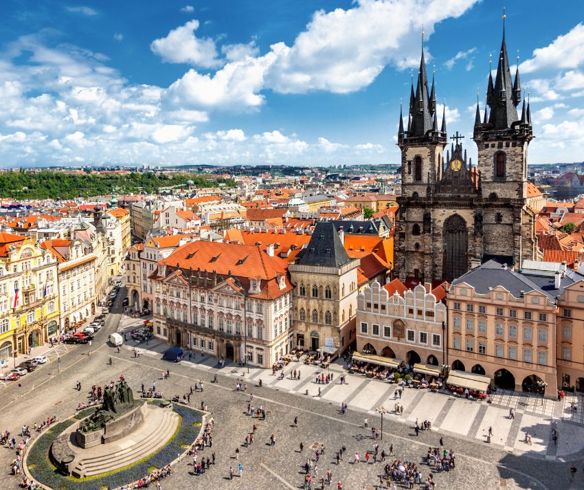 La Città Vecchia ti accoglie con la sua piazza dove l’orologio astronomico segna il ritmo lento dei secoli.