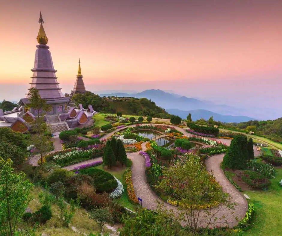 giardino tropicale. Arrivo a Chiang Mai, “La Rosa del Nord”, considerata la capitale settentrionale della Thailandia, circondata da spettacolari montagne, un bellissimo centro storico racchiuso dalle antiche mura e la sua architettura unica che si può ammirare passeggiando per le strade.Partenza per le pendici del Doi Suthep, la montagna che domina Chiang Mai con i suoi 1.056 metri di